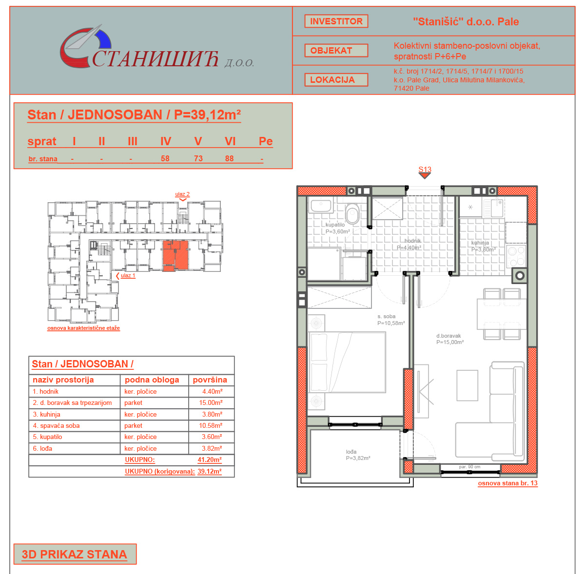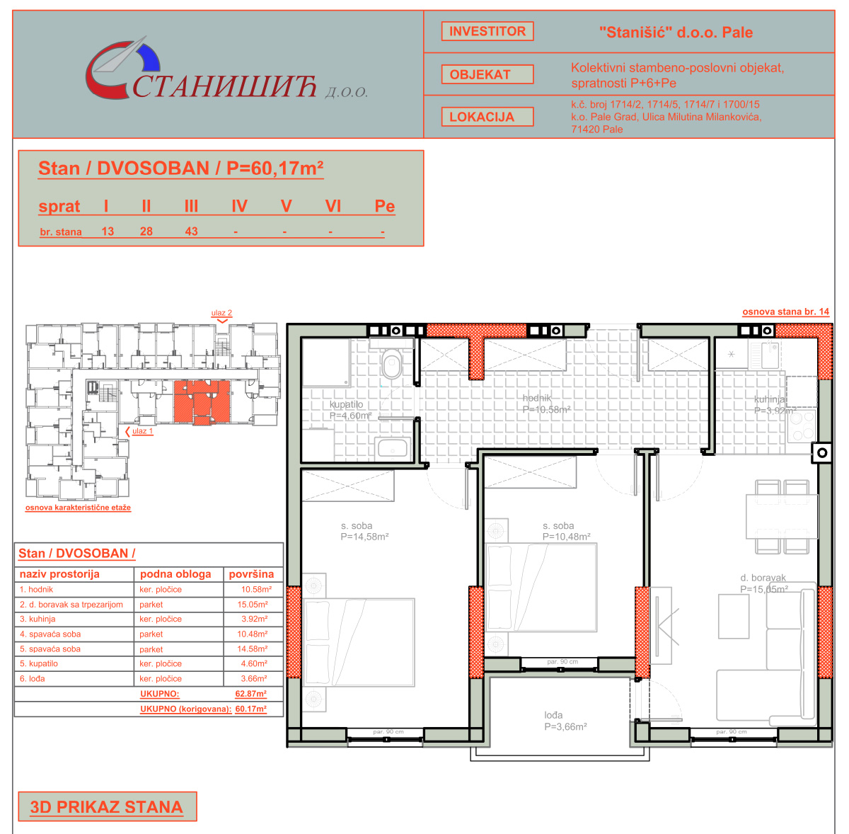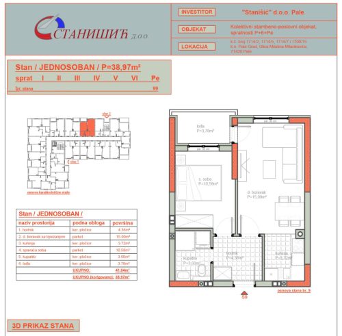 Objekat je smješten u zoni odlične povezanosti sa svim važnim sadržajima — trgovinama, školama, javnim institucijama i rekreativnim zonama. Materijali i oprema koji se koriste u izgradnji ispunjavaju najviše standarde kvaliteta i energetske efikasnosti, uz poseban akcenat na funkcionalnost, estetiku i udobnost.